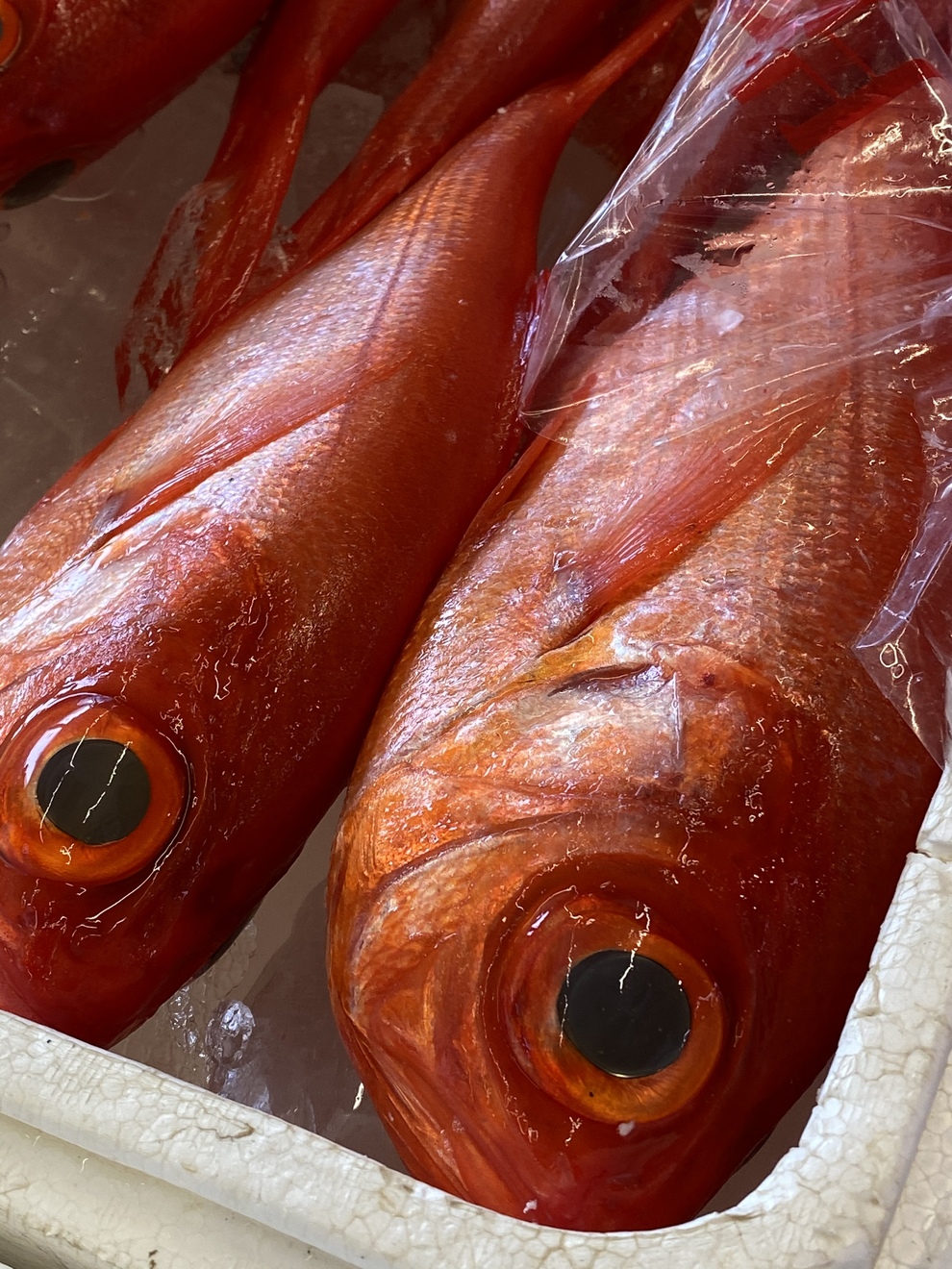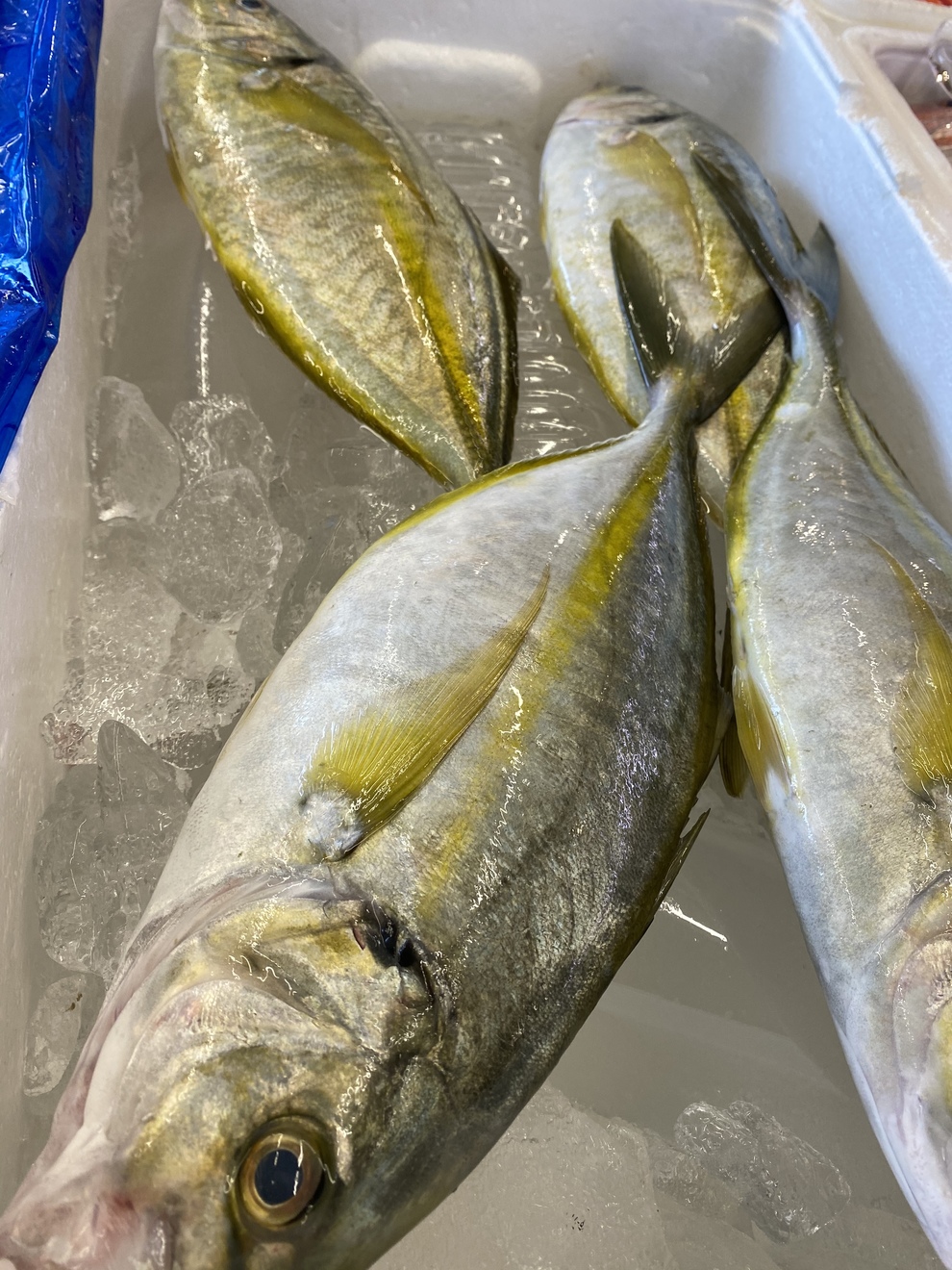 2020/07/21 お知らせ 伊豆山神社の魚久さんにお邪魔して来ました。 今日も素晴らしい魚たちに出会えて興奮してます。 サバガレイ 脂がのっていて美味しそうです。 熱海の島アジ 天然島アジ ダルマイカ 伊豆の金目鯛 News