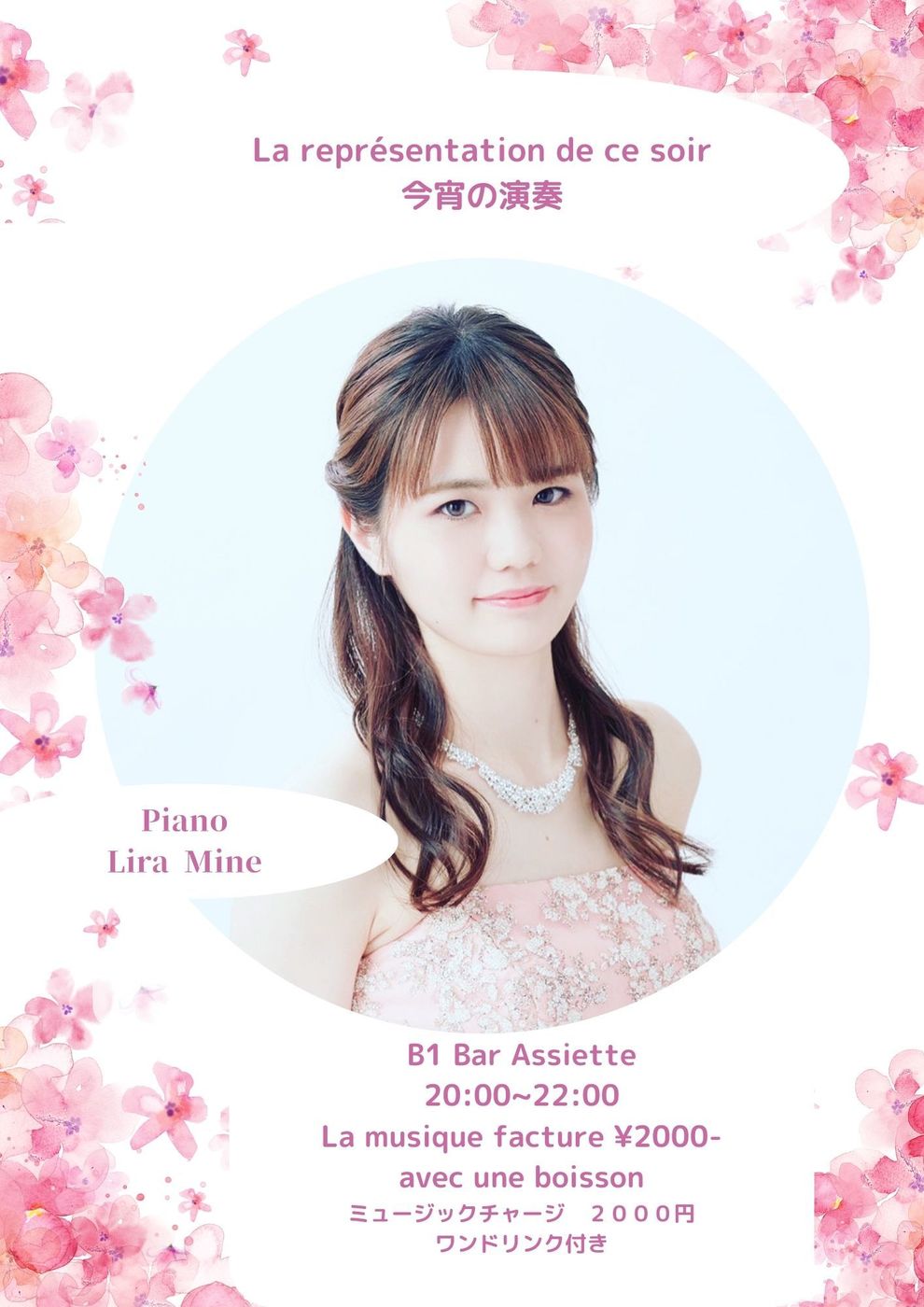 2023/06/10 お知らせ 梅雨に入りましたね! 鬱陶しい梅雨の夜を、しっとりとお過ごしください。 今夜のピアノバーでの演奏は、フェリス女学院の峯リラさんです。優しそうな容姿とは全く違うパワフルな演奏のギャップが素敵なピアニストです。 News